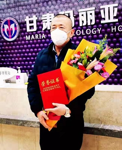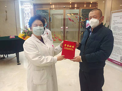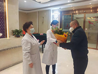 十号早上8点30分,院长杨春秀及人力资源部负责人郭兴环早早等候在医院门诊一楼大厅,热情欢迎孟逸同志从抗疫一线返回单位。当孟逸同志迈进门诊大厅,杨院长及郭主任就为他送上了鲜花和荣誉证书。杨院长与孟逸同志亲切握手,并代表院领导及全院员工,对他在疫情来临之际,面对犹未可知的凶险,迎难而上,勇挑重担,舍小家,顾大家,所表现出的无私无畏的职业精神表示敬意和感谢!