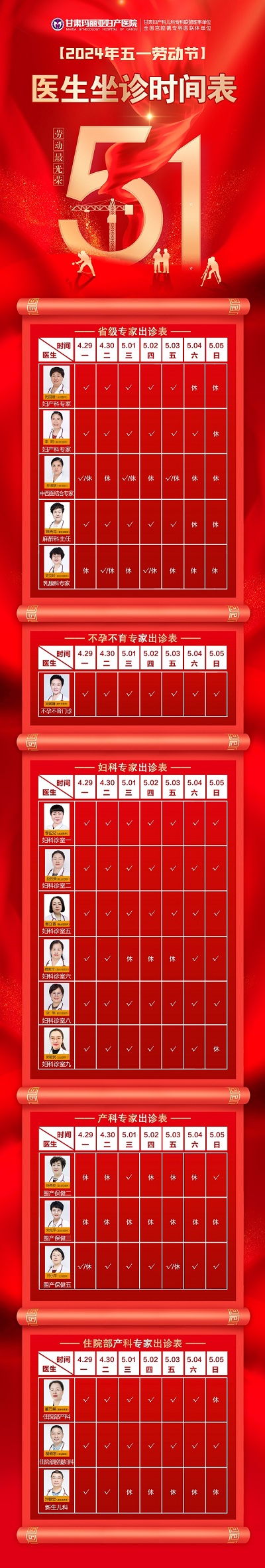 2024年五一劳动节,医生坐诊时间表